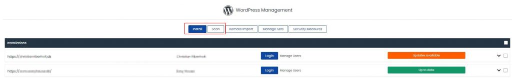 a. Hvis du ikke kan se den installation du vil slette, kan du prøve at trykke på Scan og Start scanning for installations, så dukker din installation op, hvis den er understøttet af Softaculous.